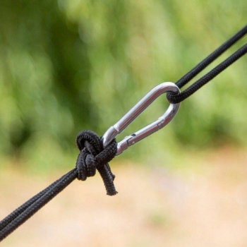 Zestaw zawiera linki montażowe oraz karabińczyki, dzięki którym rozwieszenie hamaka pomiędzy drzewami zajmuje zaledwie chwilę. Po złożeniu hamak zajmuje niewiele miejsca, dlatego jest świetnym elementem wyposażenia każdego plecaka turystycznego.