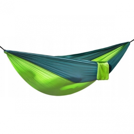 Lekki i wytrzymały hamak turystyczny w kolorze zielonym, idealny na biwak, wyprawy bushcraftowe oraz outdoor. Dzięki udźwigowi do 180 kg, wytrzymałemu materiałowi oraz prostemu montażowi pomiędzy drzewami zapewnia komfortowy odpoczynek w terenie. Hamak jest kompaktowy po spakowaniu, dlatego bez problemu zmieści się w plecaku podczas wypraw w las, na camping czy trekking.