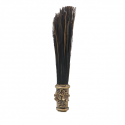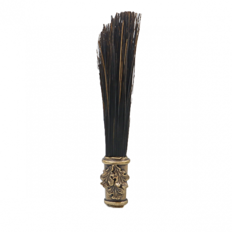 Hyb do kapelusza z motywem listków wyróżnia się nie tylko materiałem, ale także wyjątkowym zdobieniem. Ręcznie odlany z brązu element ozdobny nawiązuje do natury, dzięki subtelnemu motywowi listków, co nadaje całości unikalnego, rustykalnego charakteru. To idealny dodatek dla osób ceniących sobie tradycję oraz wysoką jakość wykonania. Brązowy uchwyt zapewnia solidność, jednocześnie doskonale współgrając z naturalnym włosiem dzika.