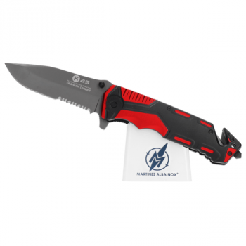 ✦ Rękojeść wykonana z lekkiego, wytrzymałego aluminium, pokrytego gumowaną, antypoślizgową powłoką, zapewnia pewny chwyt nawet w rękawicach lub mokrej dłoni. Ergonomiczny kształt poprawia kontrolę nad nożem, a intensywny czerwony kolor zwiększa jego widoczność – co może mieć kluczowe znaczenie w sytuacjach ratunkowych, nocnych lub terenowych.