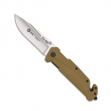 K25 KA-52 18870 to funkcjonalny i niezawodny nóż składany o taktycznym charakterze, stworzony do pracy w terenie i codziennego użytkowania. Ostrze ze stali 7Cr17MoV z satynowym wykończeniem zapewnia trwałość i łatwą konserwację, a gumowana rękojeść w kolorze coyote gwarantuje pewny chwyt w każdych warunkach. Blokada liner lock, szybkie otwieranie flipperem oraz praktyczna pochwa nylonowa czynią z tego modelu doskonały wybór do outdooru, survivalu i EDC.