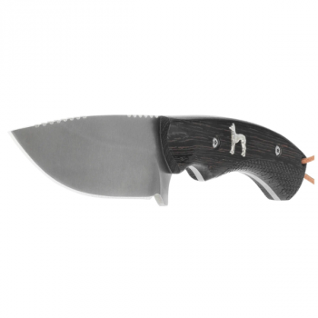 Nóż myśliwski Martinez Albainox Spanish Hound 32801 to solidny nóż z głownią stałą typu Full Tang, zaprojektowany do prac terenowych, polowań i biwaków. Ostrze ze stali nierdzewnej 3Cr13MoV o profilu drop point i satynowym wykończeniu zapewnia trwałość oraz precyzję cięcia. Rękojeść z naturalnego drewna Zebrawood gwarantuje pewny chwyt, a dekoracyjny grawer z wizerunkiem hiszpańskiego charta podkreśla myśliwski charakter. W zestawie skórzana pochwa.