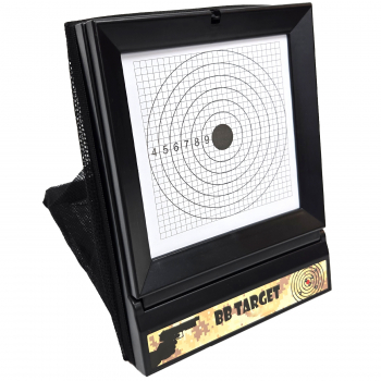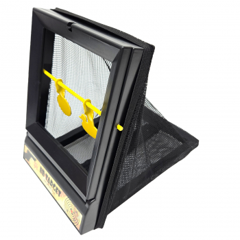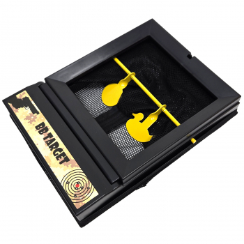 Z tyłu umieszczono siateczkowy kulochwyt (trap-net catcher), który zatrzymuje śrut i utrzymuje porządek w miejscu treningu.