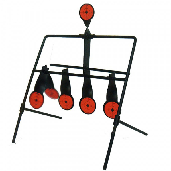 Największą zaletą zestawu jest mechanizm automatycznego resetu – po zbiciu czterech dolnych celów, wystarczy trafić w piąty, górny cel, aby wszystkie wróciły do pozycji wyjściowej.