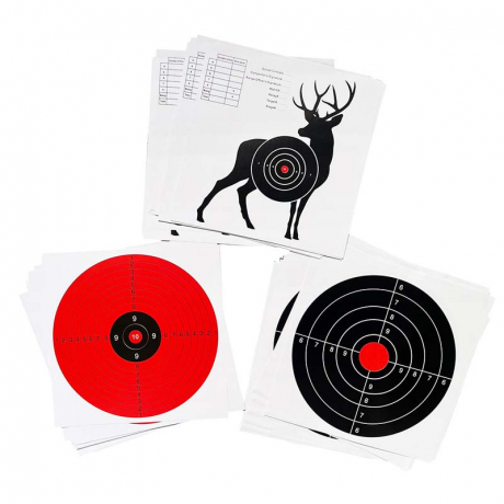 Tarcza papierowa czarna/czerwona/sylwetka jelenia MIX 17x17cm do precyzyjnego treningu strzeleckiego.