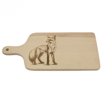 Drewniana deska do krojenia - Deska kuchenna - Deska do serwowania z grawerem w motywie myśliwskim przedstawiający Lisa – klasyczna i praktyczna (18 x 39 cm)