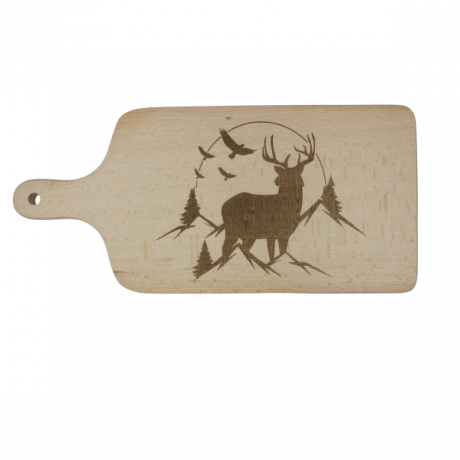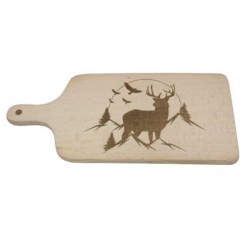 Drewniana deska do krojenia - Deska kuchenna - Deska do serwowania z grawerem w motywie myśliwskim przedstawiający Jelenia– klasyczna i praktyczna (18 x 39 cm)