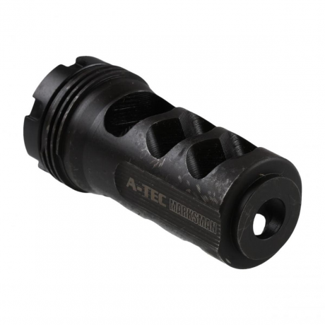 A-TEC  Marksman Brake to wydajny 3 komorowy hamulec przeznaczony do broni o maksymalnym kalibrze .338. Działa skutecznie z mniejszymi pociskami. Pozwala na montaż bezpośrednio na niego tłumika Marksman wykonany ze stali o wadze 120g i wykończonego na zewnątrz Cerakotem.