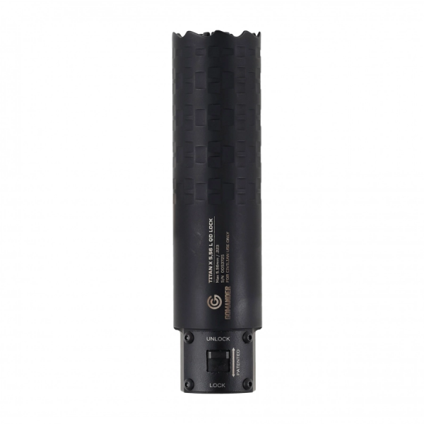 Tytanowy tłumik Gomander Titan X QD-LOCK to nowoczesne rozwiązanie przeznaczone do broni palnej w kalibrze 5,56, które skutecznie redukuje hałas wystrzału. Montuje się go na urządzeniu wylotowym Gomander Raptor lub Quadron.